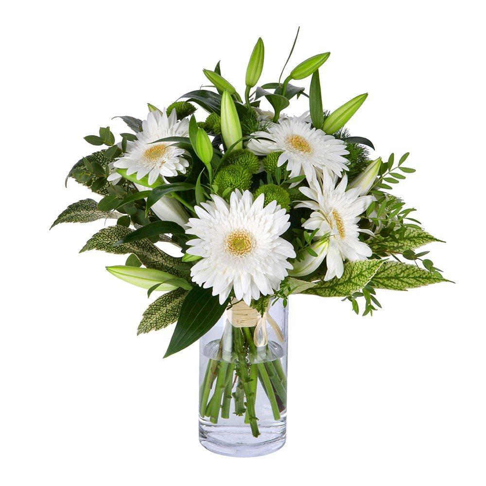 Buquê de flores em tons brancos e verdes, transmitindo uma sensação de equilíbrio e tranquilidade. Se pretender aumentar o número de flores do seu buquê e tornar a experiência de quem o recebe ainda mais especial, selecione o tamanho Médio ou Premium (Igual à imagem).
