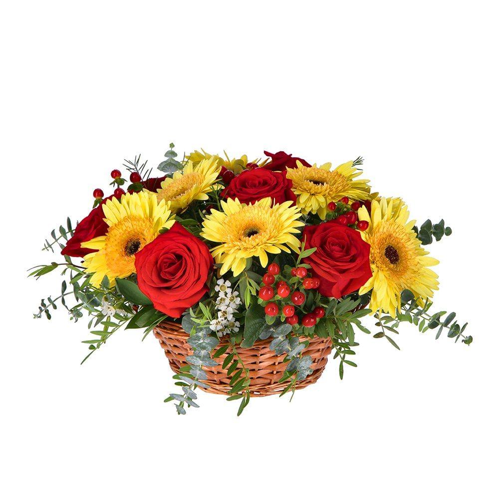 Cesta de Rosas e Gerberas